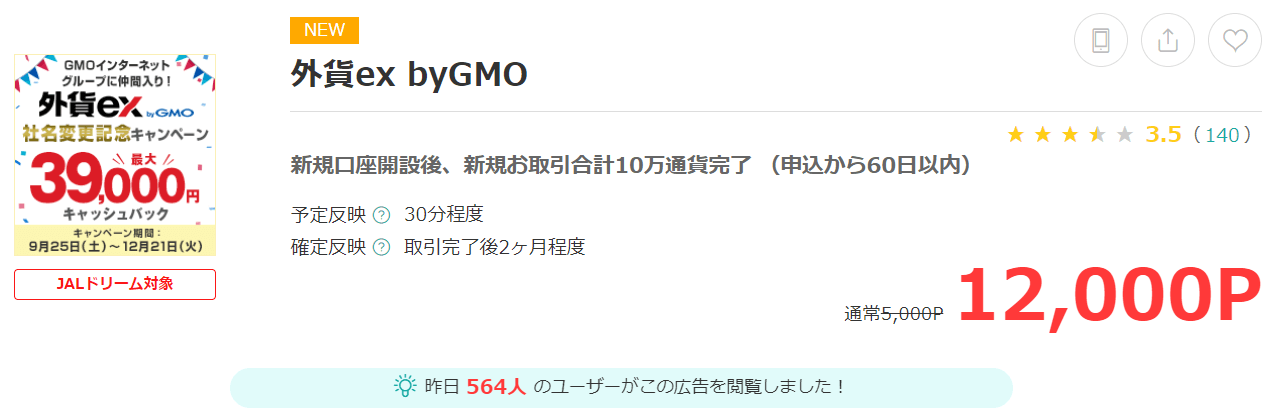 外貨ex byGMOの新規口座開設と取引で一撃12,000PをGET!!