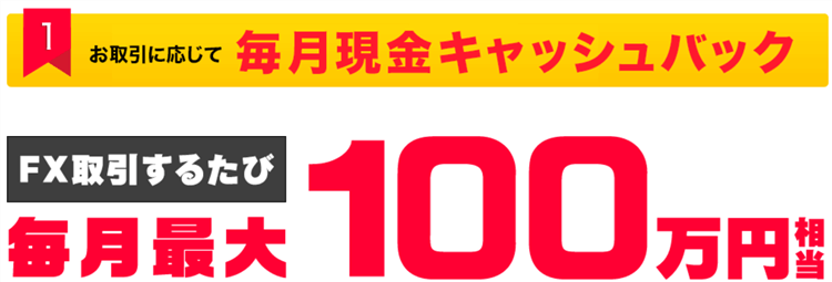 またYJFX!側のキャンペーンは取引額に応じて最大1,000,000円キャッシュバックという強烈なキャンペーンを実施しています。