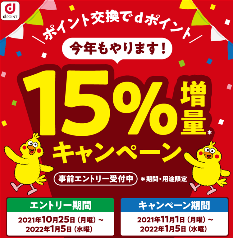 そして今ならdポイントへの交換で15%増量キャンペーンがあります。
