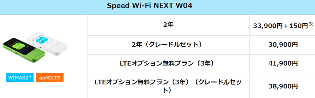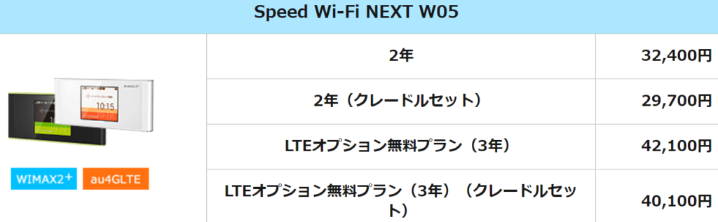 例えば、私がおすすめする「Speed Wi-Fi NEXT W05」の場合で見てましょう!