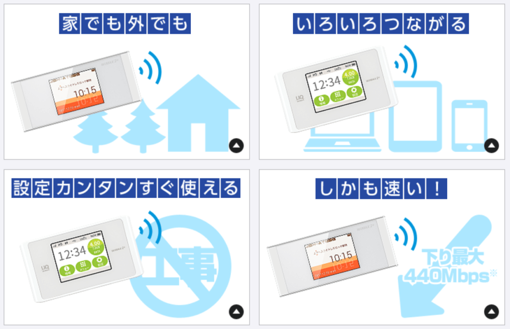 これらはすべて持ち運びが出来るモバイルルーターで、お家にいても外出先でも気軽にインターネットが出来る便利なアイテムとなっています。