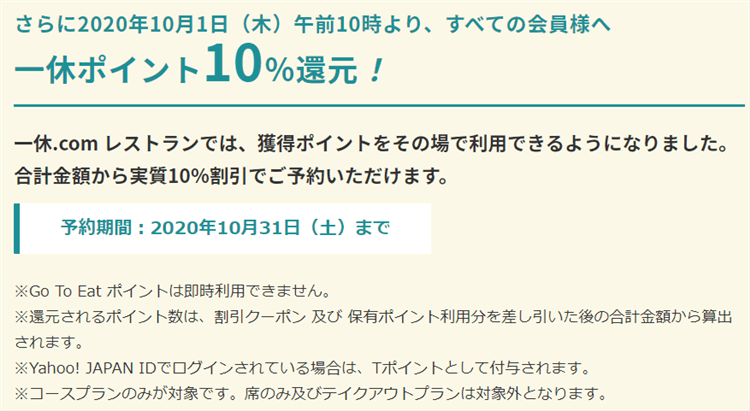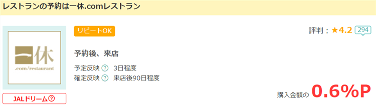 例えば、一休.comレストランであれば利用金額の0.6%がポイント還元されます。