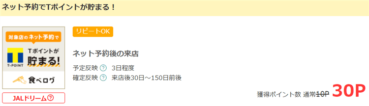 これ利用額に関係なく、一律で予約をして飲食を利用するだけでポイントが貰えちゃいます。