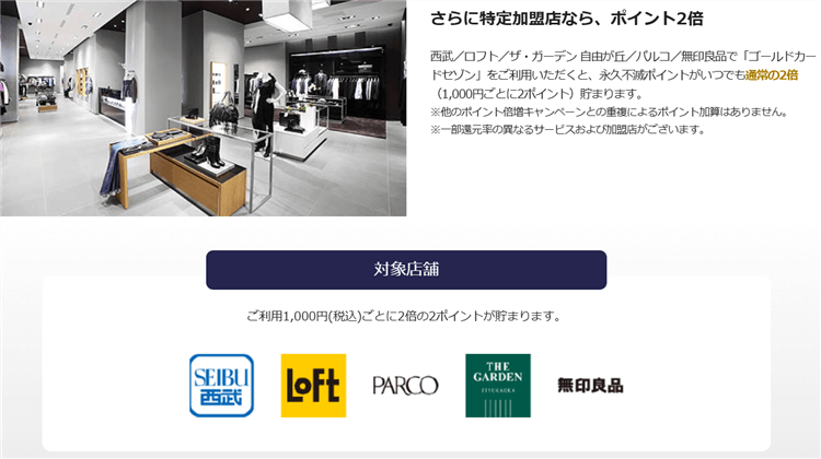 | ポイント制度 | 永久不滅ポイント(ショッピング1,000円=永久不滅ポイント1ポイント) 一部還元率の異なるサービスおよび加盟店がございます。 |