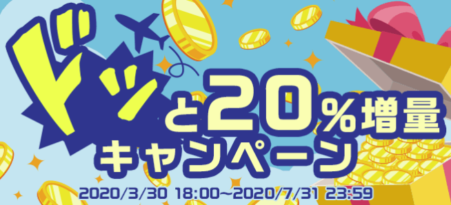 ハピタスで2020年3月30日からスタートしたキャンペーン「ドッと20%増量キャンペーン」というものがあります。