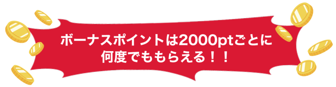 ただし、2,000ポイント利用でボーナス対象となるのは2,500ポイント分までとなります。