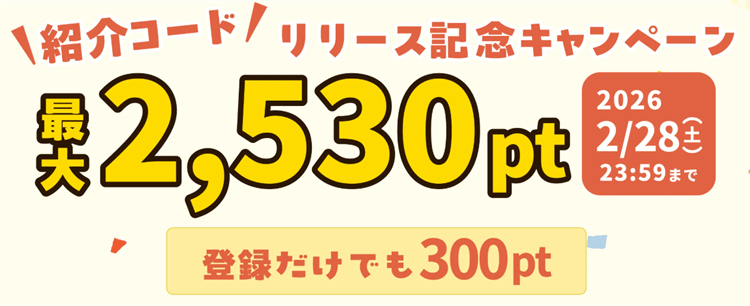 条件はちょくちょく変わっていますが、現在は概ね紹介で入会すると2,530円相当貰えるので下記バナーより入会がお得ですよ!