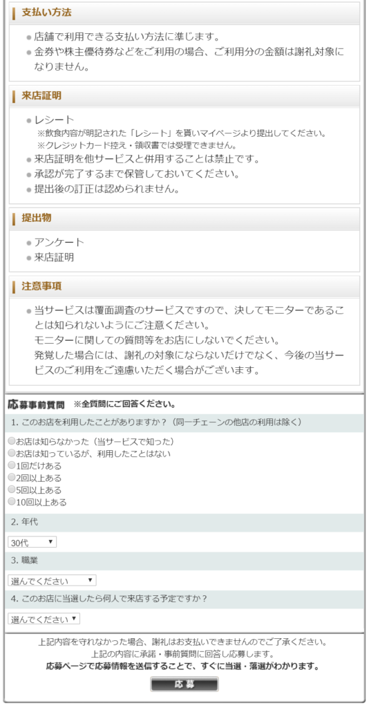 そして応募の前にいくつかのアンケートがあるので、そちらを選んだら「応募」ボタンを押せば応募完了です。