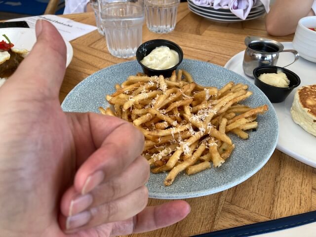 ランチとは言うものの、そこまでお腹は空いてなかったこともありオーダーしたのは、ポテト、パンケーキ、ロコモコ。