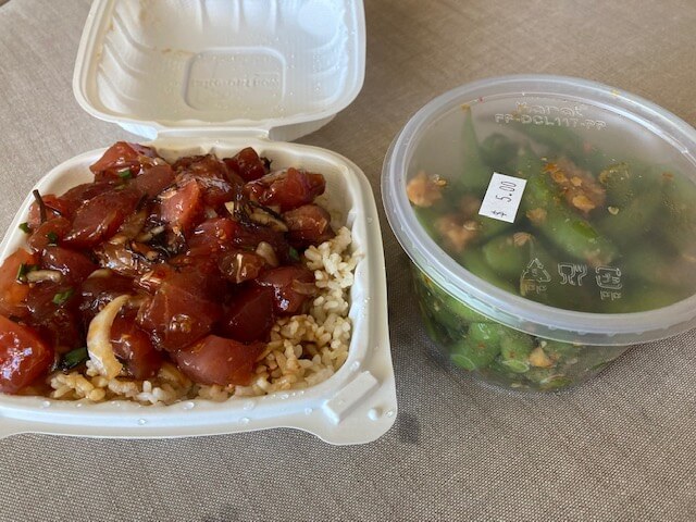 ルームに戻ってから、ポケ丼と枝豆を美味しくいただき、デザートにマラサダ。