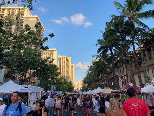 ちょうどこの日は「ワイキキ オハナ フェスティバル」でカラカウア通りは人であふれていた。