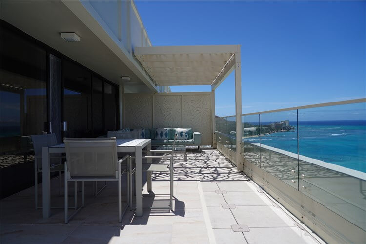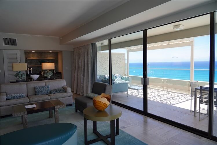 こちらはモアナサーフライダーのスイートルームです。角部屋のラナイはとても開放的ですごい良かった。