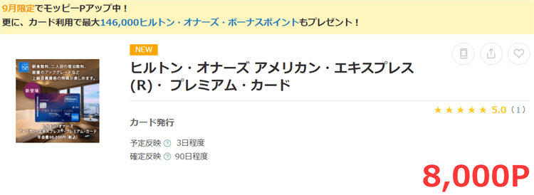 ヒルトンアメックス新規発行が最大8,000円でモッピー独占アップ!公式キャンペーンで最大146,000ポイント貰う!!