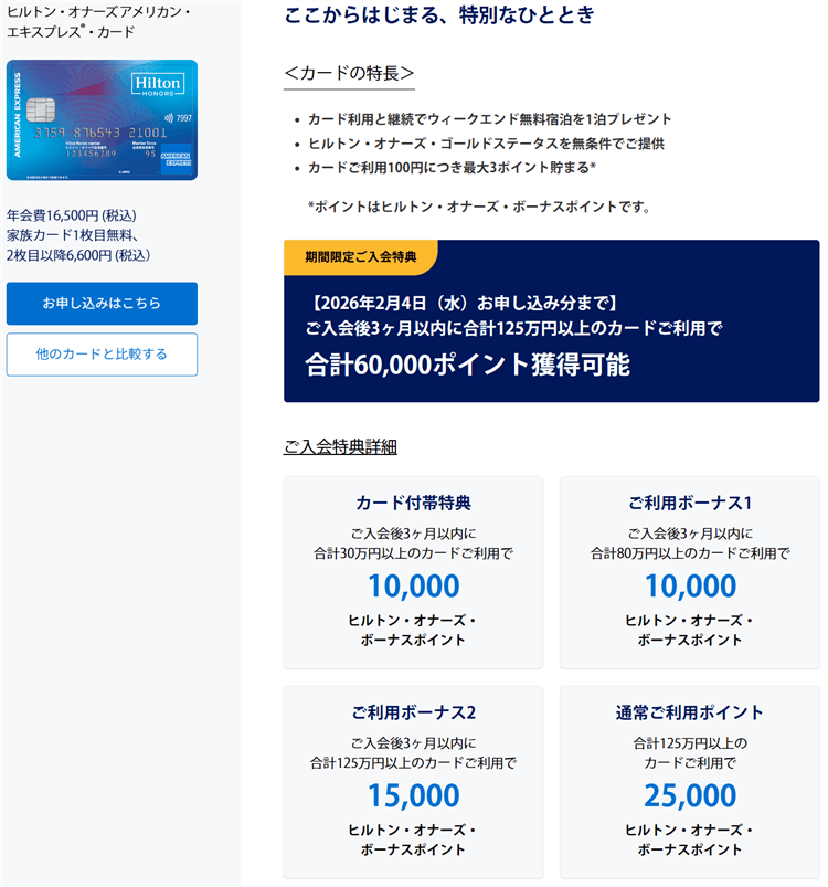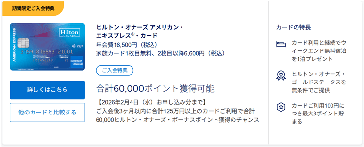 2025年11月限定!ヒルトンアメックスの新規入会キャンペーンは60,000ポイントが貰える!