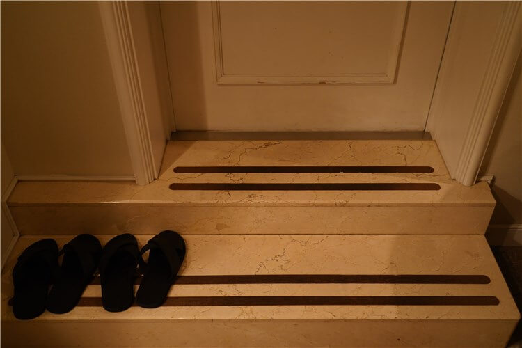 そこには段差があり、野外用のスリッパがあります。