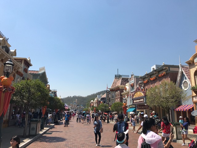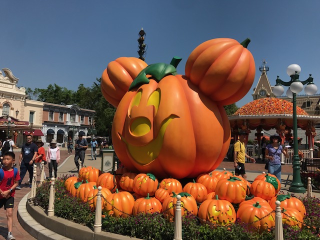 メインストリートUSAは香港ディズニーランドの玄関口となります。正面にはカボチャのミッキーでハロウィン仕様となっていますね!