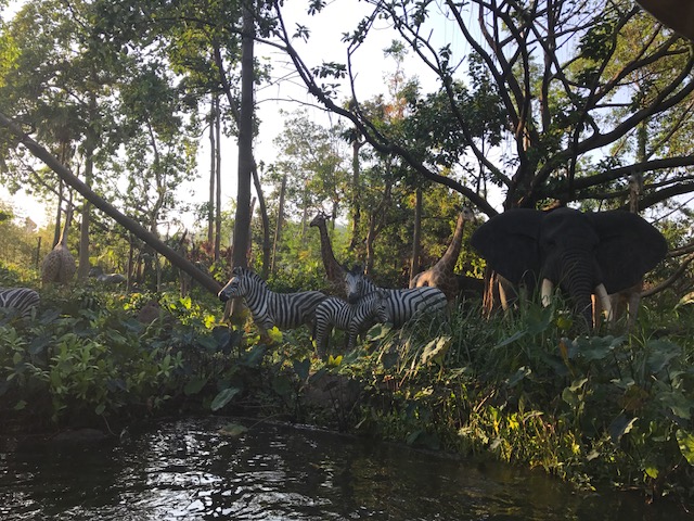 ジャングルクルーズはボートに乗ってジャングルをぐるりと回るアトラクションです。途中にはたくさんの動物が待っています。