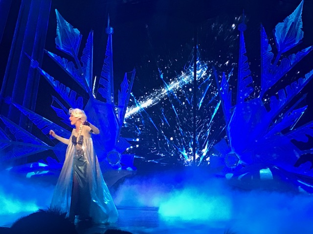 そしてラスト手前ではエルサの圧巻のショー!!舞台の上からは雪が降ってきたり、最後には紙テープリボンが大量に飛んできたりとすごい迫力があります!