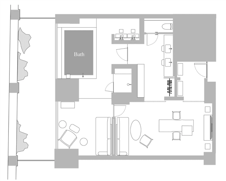 デラックススイート![]() | 55–65㎡/キング/3名様/4階/眺望 シティ コネクティングルームあり |