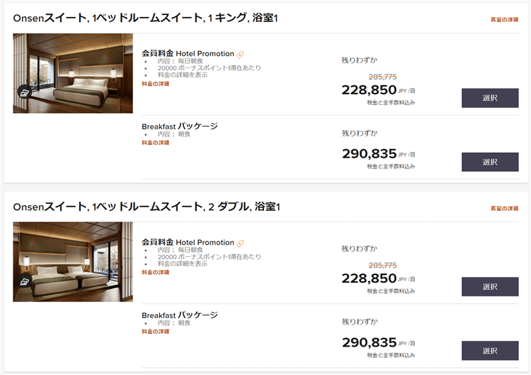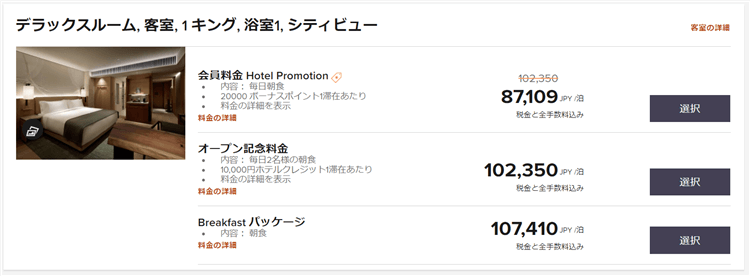 宿泊費用はおおよその目安としてスタンダードルームが6万円ぐらいとなっているので、正直キャッシュ&ポイントの利用はそこまでお得ではありませんね。