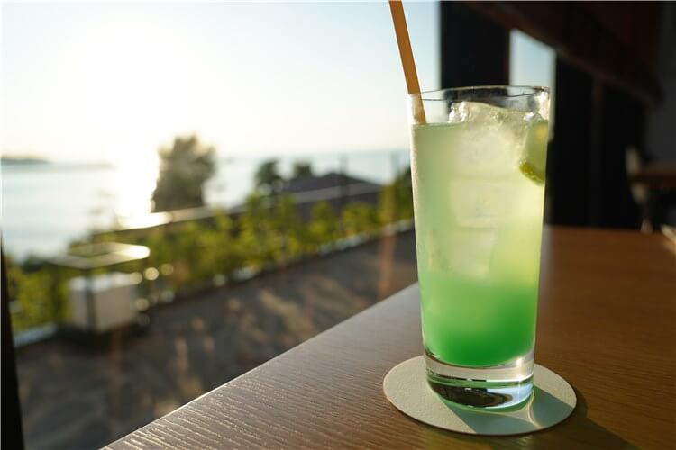 日中には気軽に立ち寄ってお茶やソフトドリンクを楽しむことが出来るようになっており、プールでひと泳ぎした後に少し立ち寄って喉を潤したりすることもできますよ。