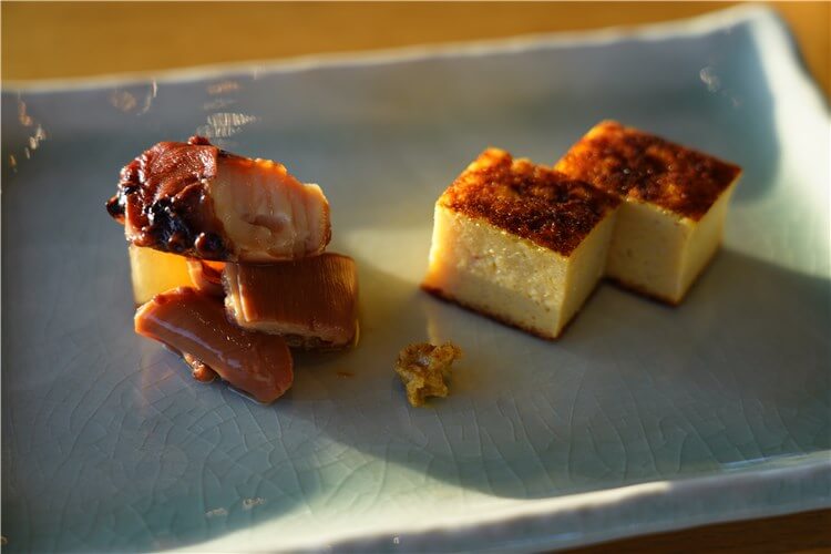 続いてこちらは日本料理の調理したタコの柔らか煮と玉子です。
