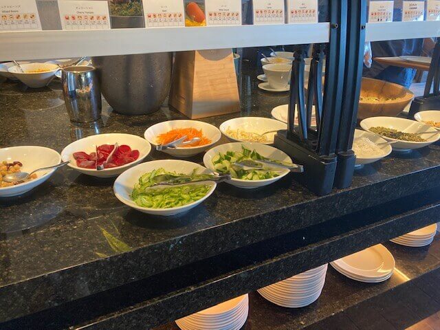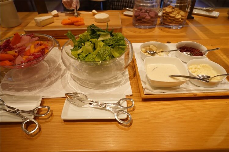 サラダも2種類あって、ドレッシングや追いチーズなんかもすることができます。