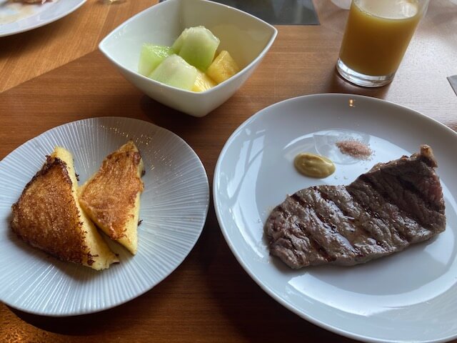 写真の見栄えが非常に良くないですが、朝からステーキをガッツリ食べられるのはすごいですね!!
