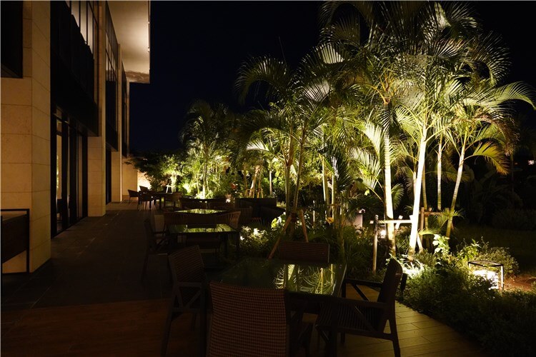 ヤシの木がたくさん植えられており、こちらのライトアップがまさにリゾートの夜というオシャレな空間に早変わりです。