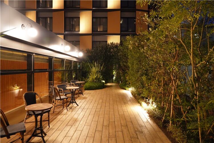 夜になるとこのようにライトアップされており、とても幻想的なテラスとなってとても綺麗でした。