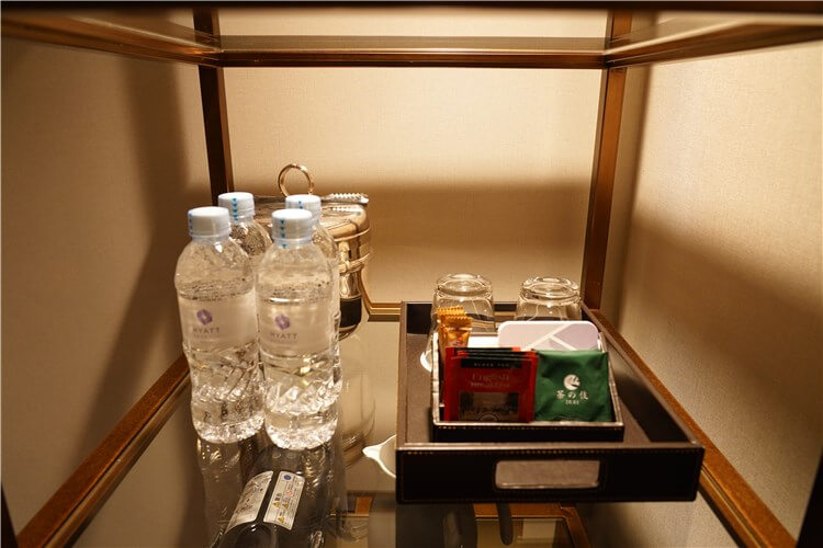 ミニバーといっても、有料のアルコール類はなく、インスタントのお茶やコーヒー、ミネラルウォーターがあります。