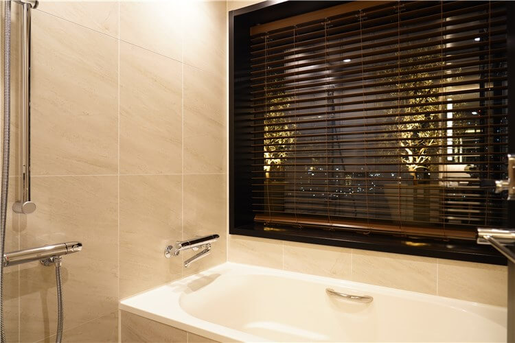 こちらはテラスに面しており、外の景色を楽しみながら優雅なバスタイムを満喫できるようになっています。