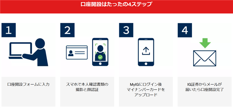 口座開設も非常に簡単で、4STEPで解説が出来るようになっていますよ!!