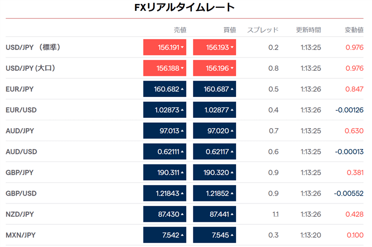 MXN/JPYのスプレッドは0.3銭と一番安い設定となっています。