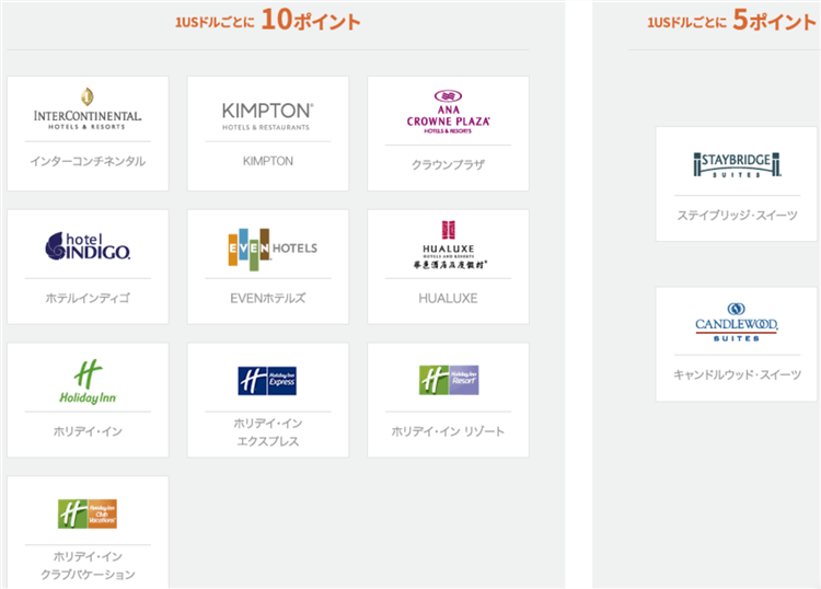 IHGグループのホテルを利用すると利用額に応じてポイントが貯まるようになっています。