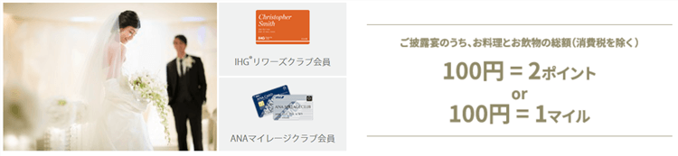 ※IHGリワーズクラブポイント、ANAマイルはご披露宴から約1ヶ月後に積算されます。
