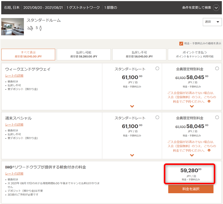 例えば「ANAインターコンチネンタル 石垣リゾート」だとこのような感じです。