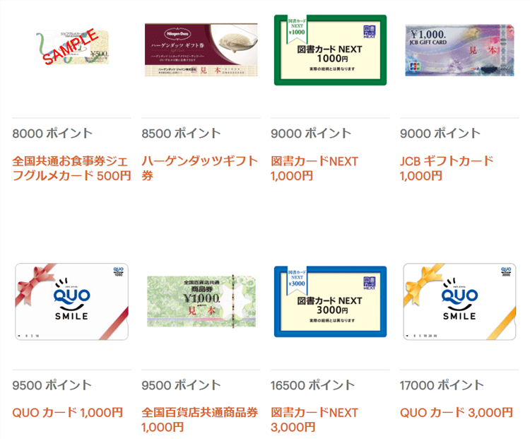 では貯めたポイントをどのように使えるのかを紹介していきたいと思います。