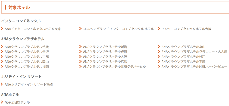 ホテル数が多いのでANAクラウン系、ANAホリデイ系は除く。