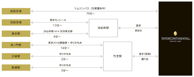 ホテル インターコンチネンタル 東京ベイへのアクセス方法、所在地について紹介します。