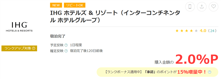 IHGリワードポイントなら最安時で39,000ポイントから宿泊可能!