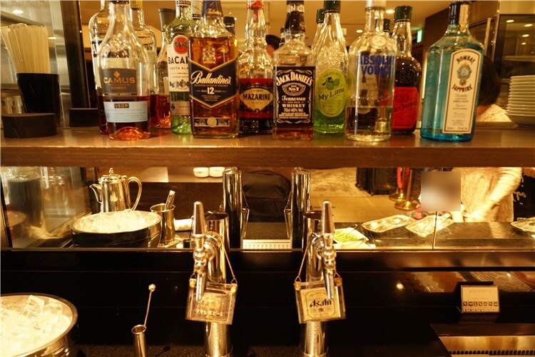 カクテルコーナーでは好きなお酒がラインナップされています。