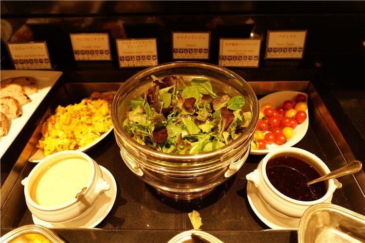 今回利用したときはセミブッフェとなっており、サラダ類やチーズなどはブッフェ形式となっており、メイン料理においてはプレート提供形式となっていましたよ!