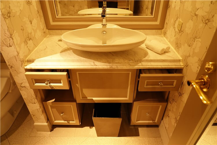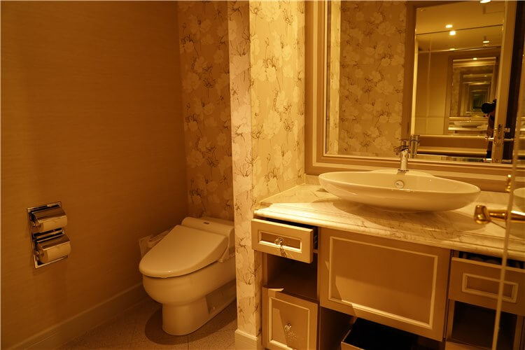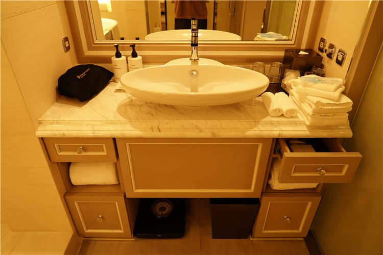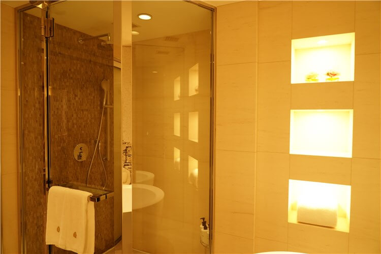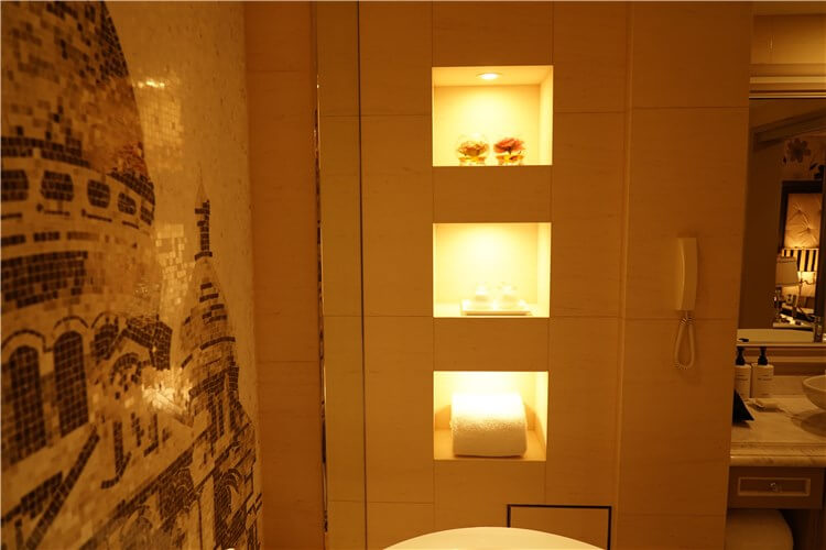 両サイドには飾り棚があり、こちらにはバスタオルが両サイドに設置されています。