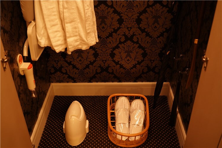 ベッド手前のフットチェアにはランドリー用のセットが置いてありました。