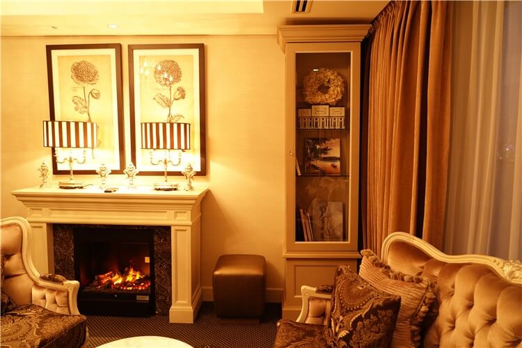 暖炉はフェイクですが、本当に火が灯っているように見えてとても癒されました!