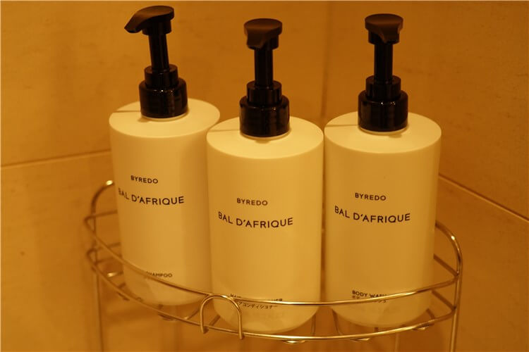 飾り棚は3か所のくぼみがあり、一番上には小物、中段にはバスソルトが2種類セットされていました。