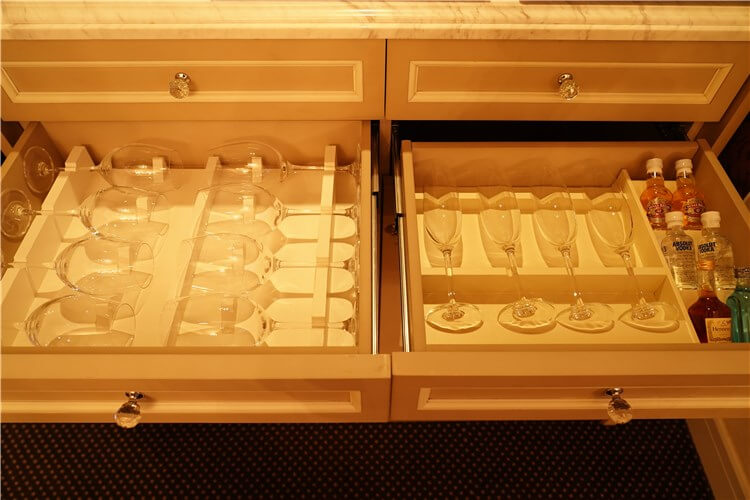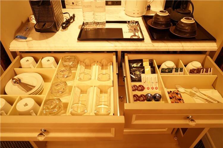 引き出しを開けると綺麗にグラス類や食器が並べられています。