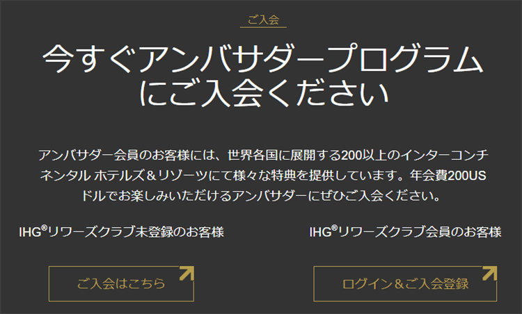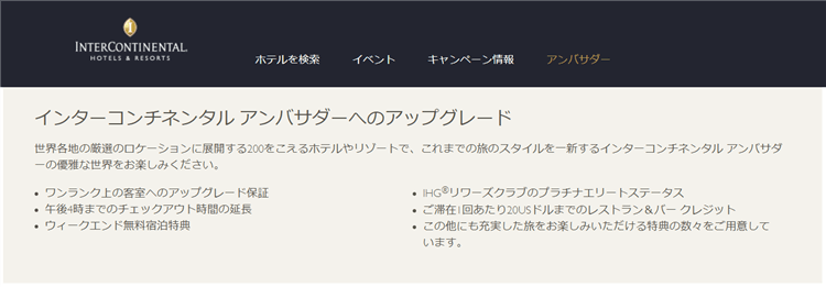 - インターコンチネンタルアンバサダーのお得な入会キャンペーン