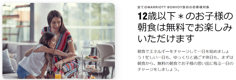 *一般会員、シルバーエリート会員、ゴールドエリート会員のお客様がご自身のブッフェスタイルの朝食をご注文された際に12歳以下のお子様の朝食は無料となります。